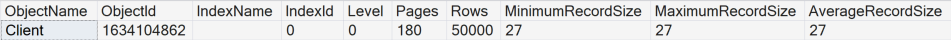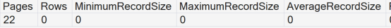 Let’s DELETE all the records, check the MinimumRecordSize and add some data again. This way, we will have a bunch of new pages and, if those were different, the MinimumRecordSize would be smaller.